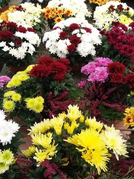 - chryzantemy w różnych kolorach i gatunkach oraz kompozycje kwiatowe