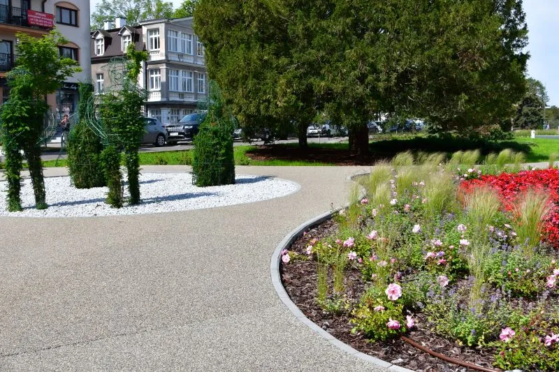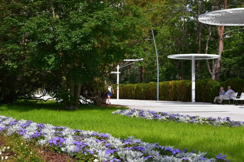 Wybudowano nowe elementy infrastruktury: tężnie solankowe, fontanny, elementy małej architektury - ławki, stoły, nowe oświetlenie, w tym nowość – ringi świetlne, które prezentują się naprawdę widowiskowo. Wykonano parasole miejskie tzw. zacieniacze. Na użytkowników czekają wygodne ławki z wysokim oparciem, stojaki na rowery. Całości dopełniła zieleń przybierając ciekawe formy i kolory.