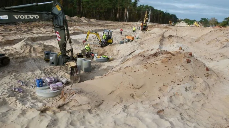 W zeszłym tygodniu kontynuowana była też przebudowa i budowa sieci wodno-kanalizacyjnej na zachód i wschód od ul. Karsiborskiej. Przebudowywano sieci teletechniczne, a także prowadzono roboty ziemne dla zbiornika retencyjnego R1. Wciąż prowadzone są też prace ziemne pod drogę główną DK 93.