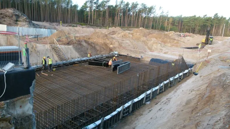 W komorze startowej – przygotowywanej dla maszyny TBM – odbywał się demontaż rozparcia tymczasowego po wykonaniu płyty dennej. Aby maszyna TBM mogła rozpocząć pracę, na wyspie Uznam, przygotowywany jest plac do jej montażu.