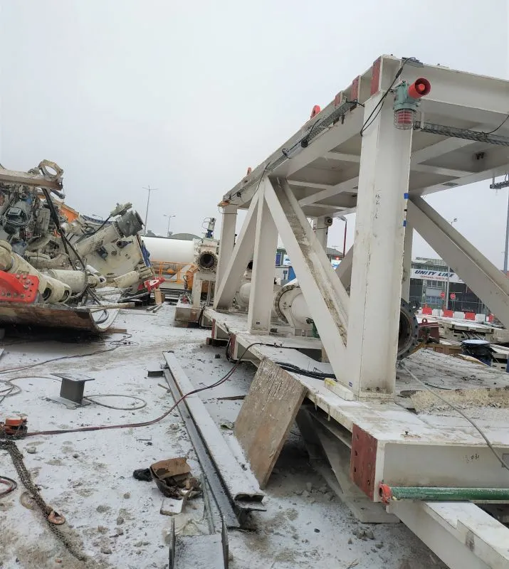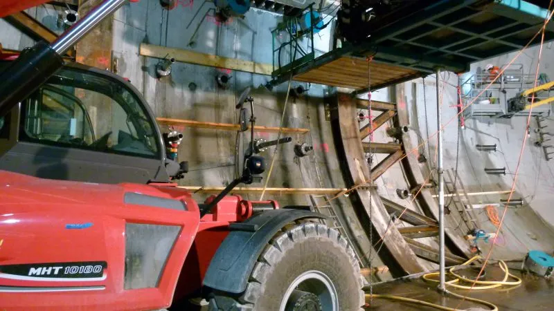 Z kolei na wyspie Wolin w komorze odbiorczej demontowana jest Wyspiarka. Trwa wyciąganie bram zaplecza maszyny TBM. Zdementowane elementy są transportowane na place składowe. Poza tym szyb jest odwadniany i czyszczony.