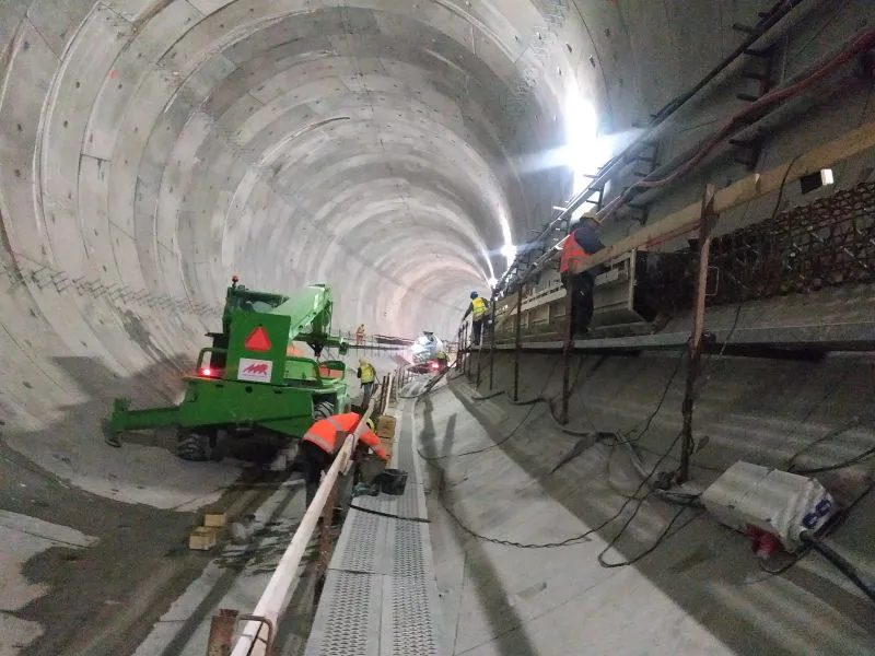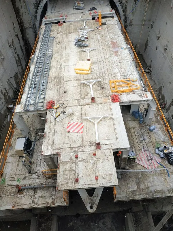 Prace prowadzone są też w rejonie segmentów R1 - R16. Kontynuowany jest demontaż ściany szczelinowej, zamykającej komorę odbiorczą TBM od strony rampy.