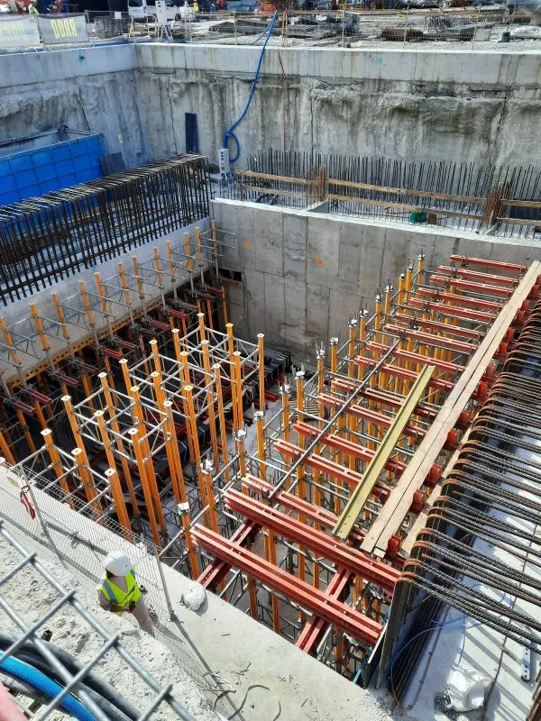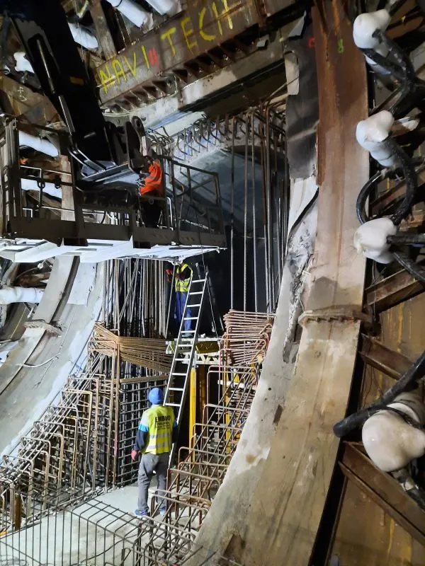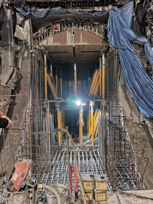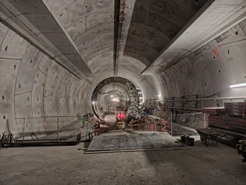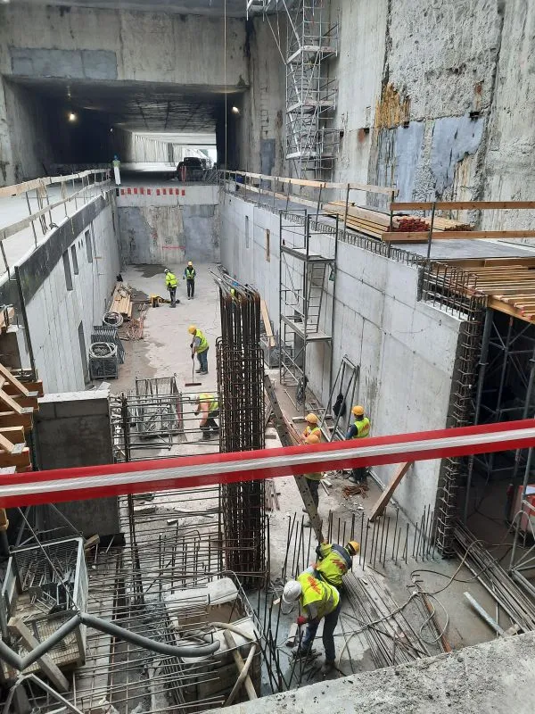 W komorze odbiorczej demontowana jest rampa tymczasowa i powstają konstrukcje wewnętrzne. W tunelu wykonanym maszyną TBM kontynuowane jest na obu wyjściach ewakuacyjnych mrożenie pasywne i ostateczna obudowa wyjść. Trwa także układanie prefabrykatów i zbrojenie płyty poddrogowej.