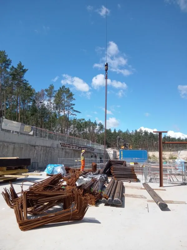 Natomiast na wyspie Uznam w komorze startowej powstają konstrukcje wewnętrzne, a na rampie i tunelu wykonywanym metodą stropową, w segmentach S1 do S11 roboty wykończeniowe kap chodnikowych i barier energochłonnych. W budynku Centrum Obsługi trwają prace instalacyjne i wykończeniowe, podobnie w budynku stacji zasilającej Trafo TK3.