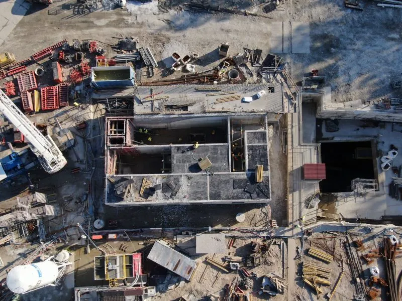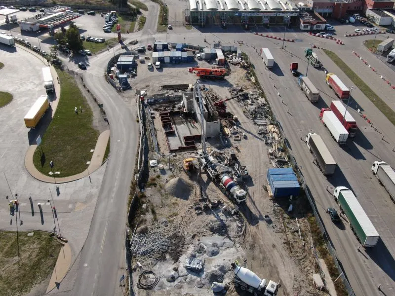W budynku Biura Centrum Obsługi kontynuowane są roboty wykończeniowe, między innymi implementacja systemów sterowania infrastrukturą tunelową na terenie magazynu, a także prace programistyczne. W budynku wentylatorni zakończone konstrukcje pod suwnicę oraz sam jej montaż.