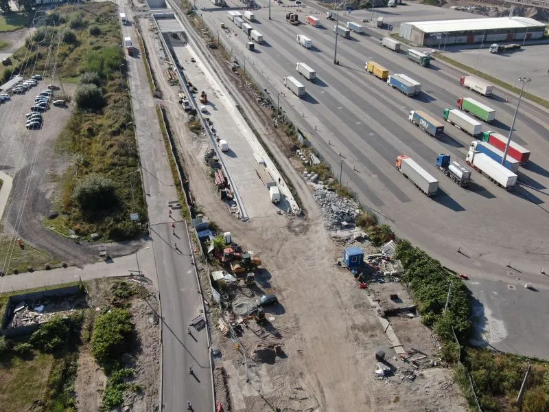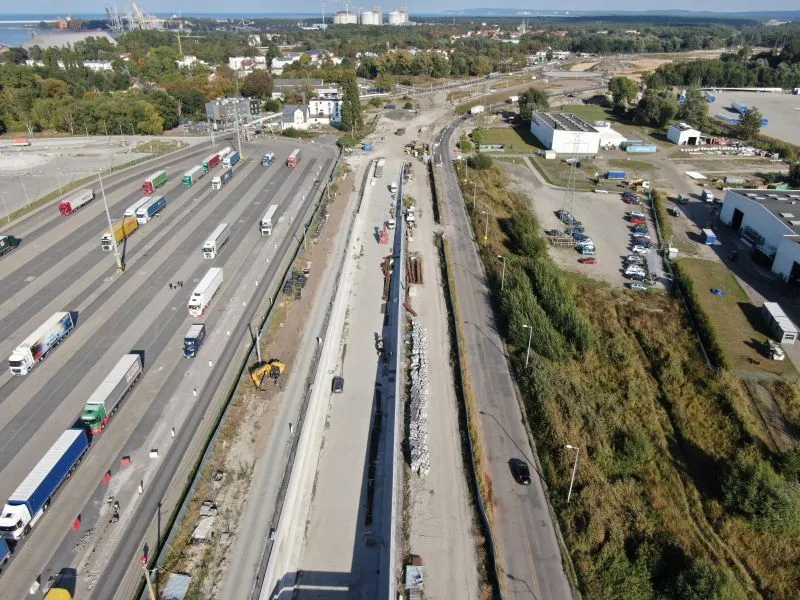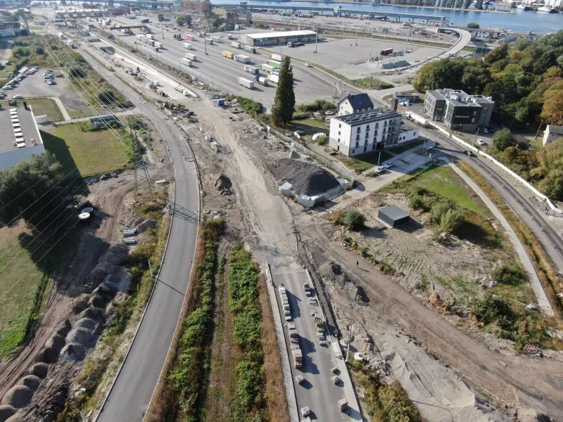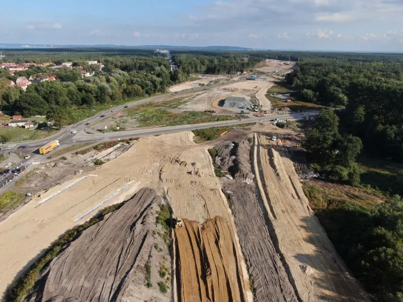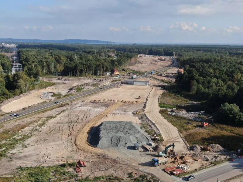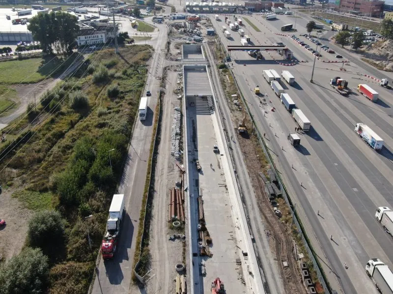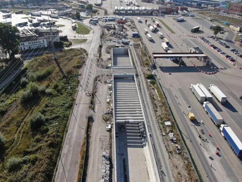 Na rampie i w tunelu wykonywanym metodą stropową trwają roboty wykończeniowe kap chodnikowych i barier energochłonnych czy montaż konstrukcji pod elewację (panele aluminiowe). Na poszczególnych odcinkach wykonywane są roboty drogowe, w tym budowa i przebudowa sieci i uzbrojenia terenu oraz infrastruktury drogowej. Plac budowy jest porządkowany.