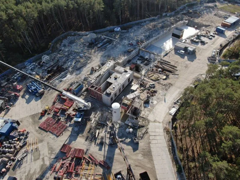 W komorze odbiorczej TBM kontynuowana są prace nad konstrukcją szachtu i klatki schodowej ponad stropem górnym, a także w budynku Trafo TK2. Ściany szczelinowe są uszczelniane.