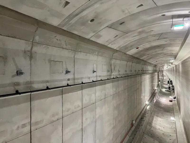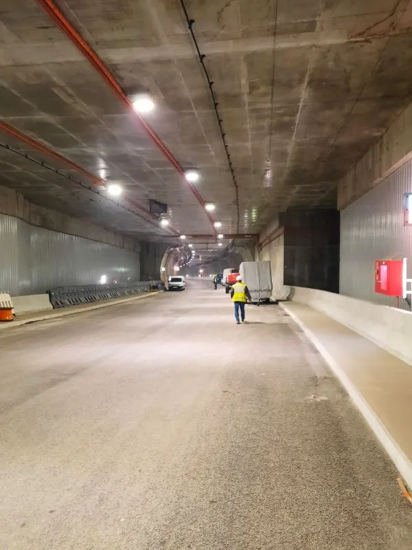 Zakończyło się malowanie klatek schodowych oraz wyjść ewakuacyjnych wykonanych w technologii mrożenia gruntu. Konstrukcja obu wyjść, obudowy tunelu oraz prefabrykatów pod jezdnią jest doszczelniana i czyszczona. Wykonywane są kolejne próby instalacji infrastruktury, w tym próby wentylacji.