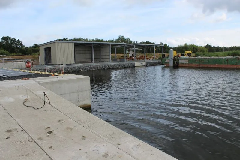 Gotowy jest też pirs umożliwiający wciąganie jednostek na brzeg. Aktualnie gros prac skupia się na wykańczaniu nawierzchni ciągów pieszych. Wykonawca czeka na dostawę pomostów pływających, które przypłyną do Łunowa ze Szczecina. Mają być zamontowane jeszcze w bieżącym tygodniu.