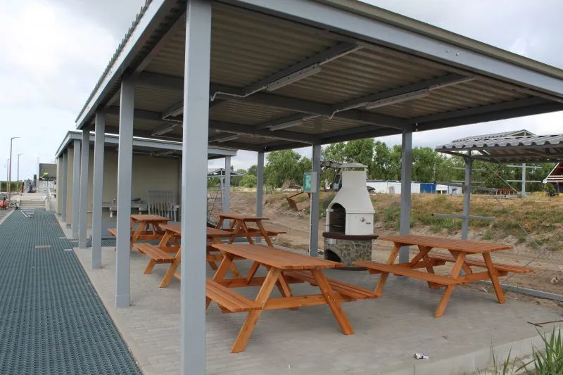 Na zewnątrz gotowe jest też oświetlenie całej przystani. Wybudowano i wyposażono wiatę dla żeglarzy wraz ze stanowiskiem do grilla i ławami.