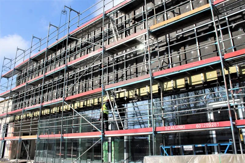 Na budowie CEZiT rozpoczęło się układanie wykładziny boiska w hali sportowej. Wybudowane są już niecki basenowe, powstaje elewacja na budynku basenu.