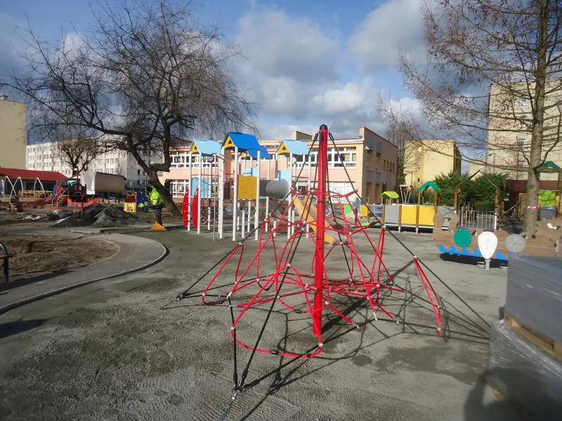 Powstały nowe ścieżki dla dzieci, wydzielono strefy zabaw, zamontowano większość nowych urzadzeń. Z dnia na dzień przyprzedszkolny plac zabaw staje się coraz bardziej kolorowy.