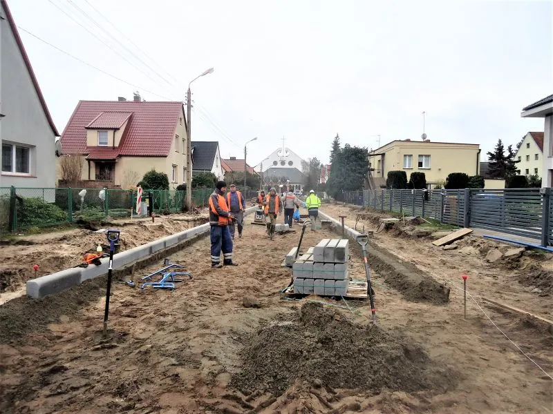 Kilkanaście dni temu drogowcy rozebrali całą jezdnię. Na odcinku pomiędzy skrzyżowaniami z ul. Gdańską i Olsztyńską powstaje nowa konstrukcja drogi. Ustawione zostały już krawężniki, które wyznaczają zarówno geometrię nowej jezdni, jak i wjazdów do posesji czy zatoczek postojowych przed budynkami. Powstaje podbudowa pod ułożenie warstw bitumicznych. Wykonująca zadanie firma Czajka ze Świnoujścia chce do świąt doprowadzić drogę do tego stanu, by w czasie świąteczno-noworocznym mieszkańcy mieli możliwość dojazdu do swych domów.