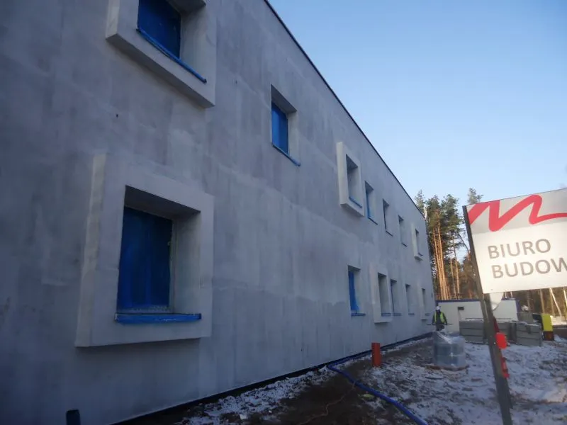 Zamontowana zewnętrzna stolarka drzwiowa i okienna pozwala na wykonywanie prac wewnątrz obiektu. Tym bardziej, że działa już system ogrzewania wyposażony we własną ciepłownię. Na finiszu jest wylewanie posadzek, w kuchni już nawet ułożono kafelki.