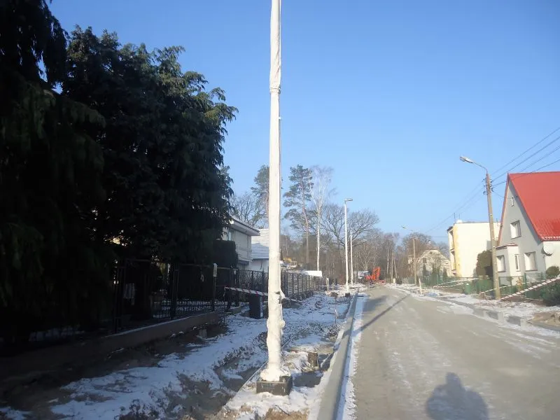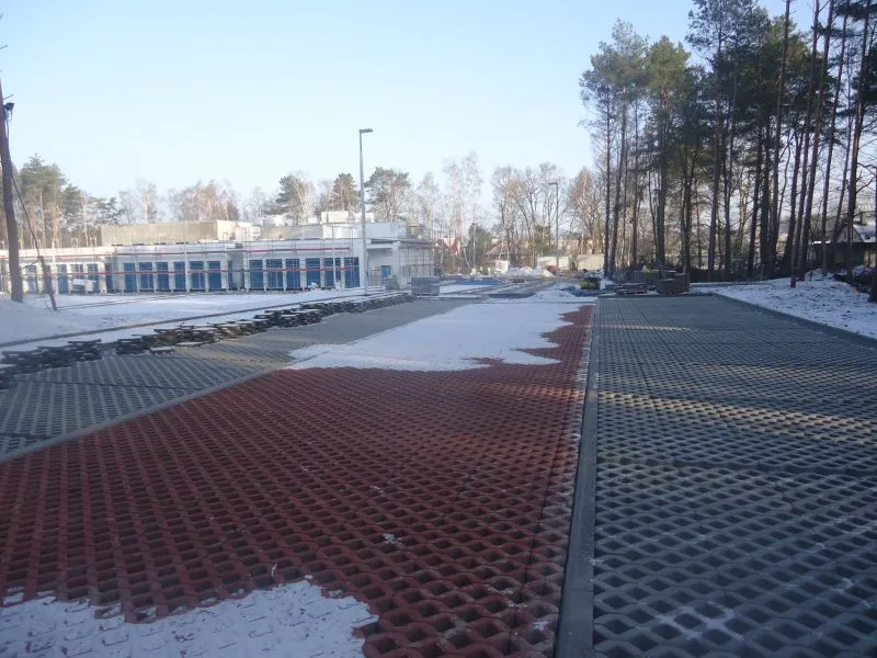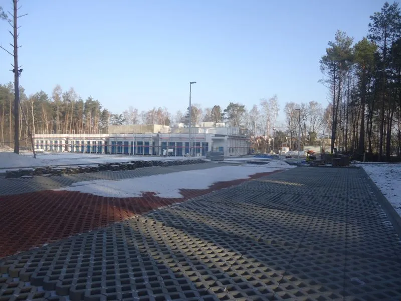 Izolacja jest już ułożona na ścianach z trzech stron, kończą się prace na ścianie od zachodniej strony. Ułożone są także ażurowe nawierzchnie miejsc postojowych i dojazdów do parkingu. Trwają prace przy budowie jezdni ul. Bydgoskiej na odcinku od skrzyżowania z ul. Gdańską do wjazdu na teren przedszkola.