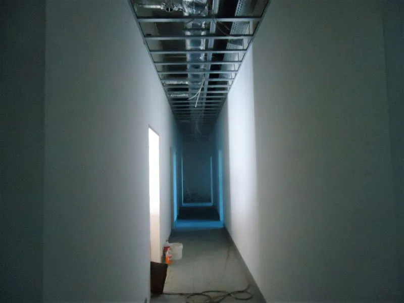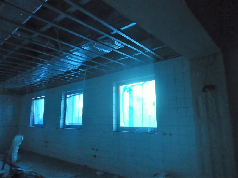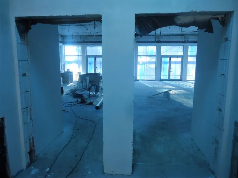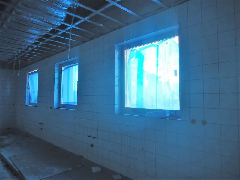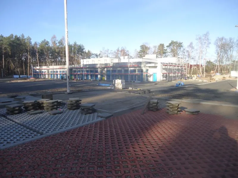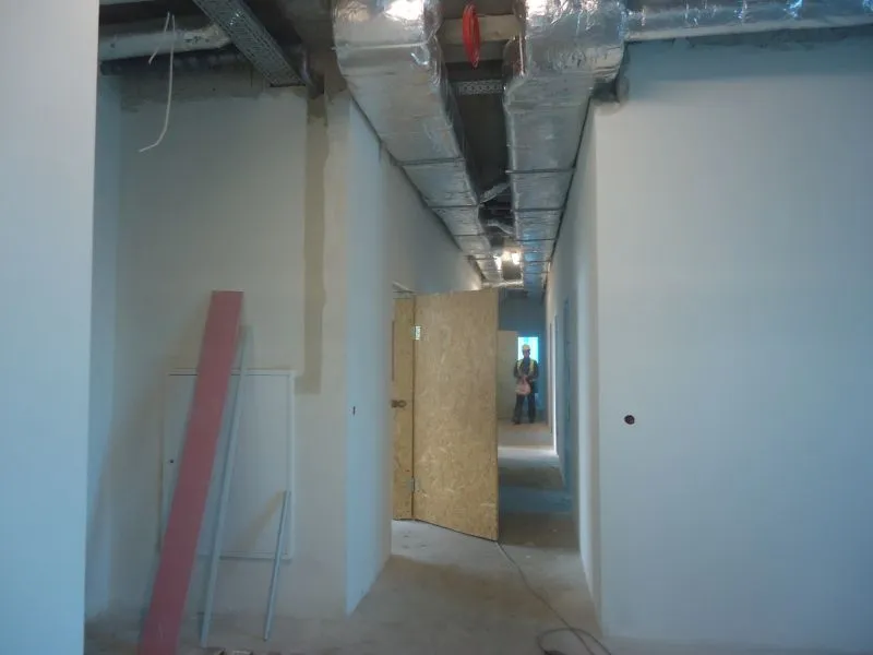 Wykonawca już uporał się niemal w pełni z wszystkimi robotami sieciowymi. Działa ogrzewanie, zamontowane są grzejniki, wykonana została wentylacja, rozłożone sieci elektryczne (brakuje tylko gniazdek) i teleinformatyczne oraz wodno-kanalizacyjne. W części gastronomicznej wyłożone są płytki na ścianach i trwa fugowanie.