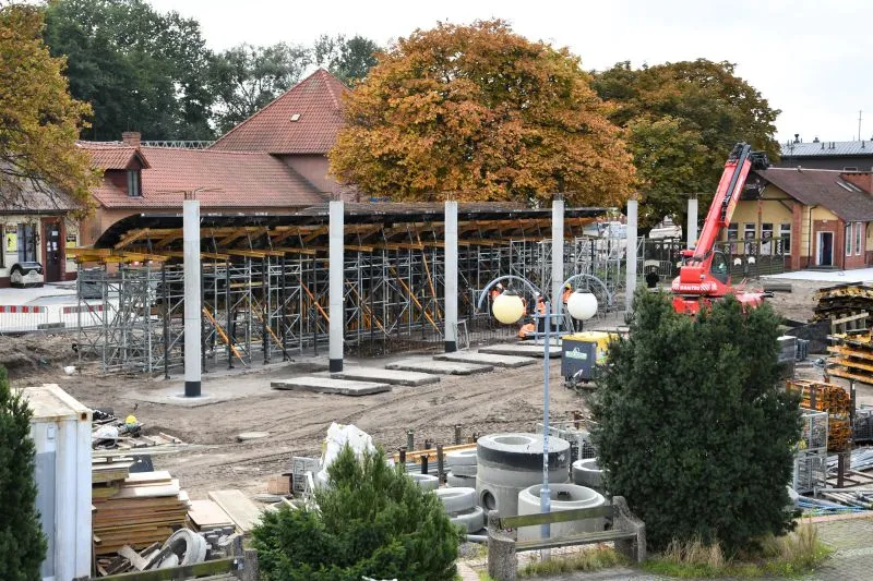Prace rozpoczęły się od wymiany kanalizacji deszczowej. Wymieniona będzie także cała nawierzchni placu, chodników i jezdni. Wykonane zostanie nowe oświetlenie terenu oraz ulicy Dworcowej. Trwa budowa nowej wiaty-poczekalni dla pasażerów.