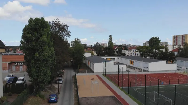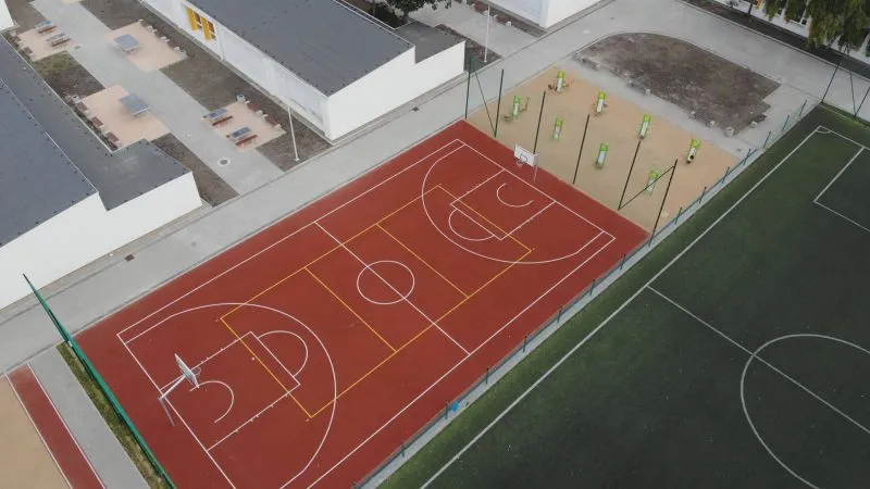 Przebudowano nawierzchnię chodników, oddzielono pasem zieleni teren przyszkolny od jezdni, dokonano nowych nasadzeń drzew i krzewów. Uczniowie będą mieli możliwość pozostawiania rowerów w nowych stojakach i odpoczywania na nowych ławkach w przerwach między lekcjami. Cały teren szkolny został oddzielny nowym ogrodzeniem. Z rzeczy niedostrzegalnych gołym okiem, aczkolwiek niezbędnych, wykonana została nowa kanalizacja deszczowa oraz odwodnienie boisk.