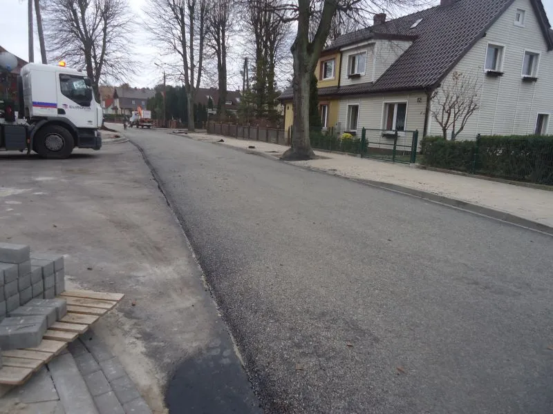 Firma Eurovia kończy modernizację ul. Gdańskiej. Świeżo ułożony asfalt czeka na oznakowanie poziome.