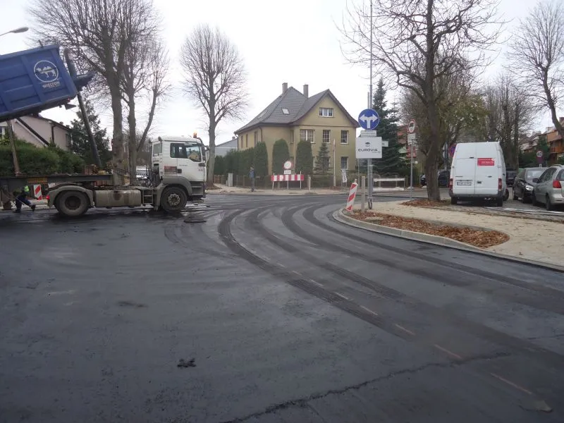 Zgodnie z umową inwestycja ma być zakończona do 18 grudnia. Pod koniec listopada wykonawca układał ostatnią warstwę asfaltu. Trzeba jeszcze na niej namalować oznakowanie poziome, ale – zgodnie z technologią – nie można tego wykonywać zbyt szybko, na świeżo położonym asfalcie.