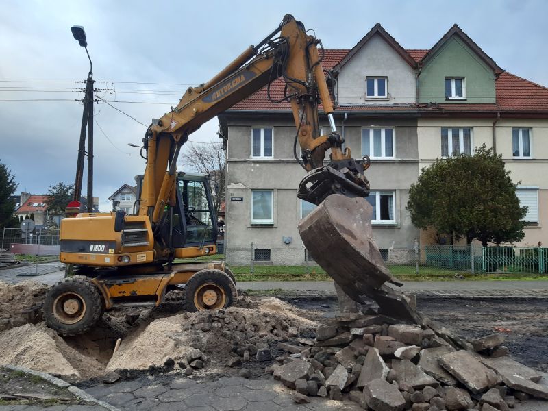 Oczywiście roboty rozpoczęły się od rozbiórki starych nawierzchni. Ulica będzie przebudowana na odcinku 382,5 m pomiędzy skrzyżowaniami z ul. Gdańską i Szkolną