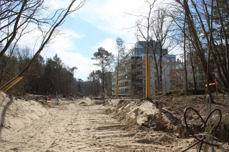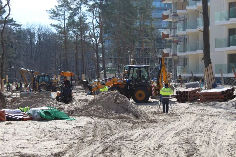 Szybko zmienia się krajobraz na budowie nowego wejścia na plażę na przedłużeniu ul. Zdrojowej. Widać już nie tylko zarys nowej drogi, ale także ronda.