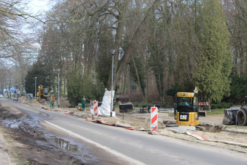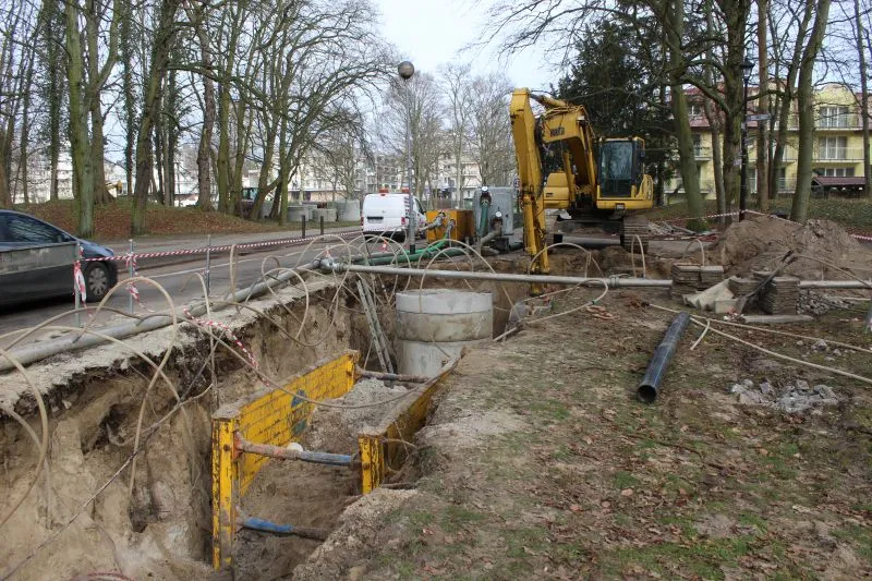 W ul. Bolesława Chrobrego od listopada prowadzona jest przebudowa sieci  kanalizacji  sanitarnej, grawitacyjnej od ul. Sienkiewicza do przepompowni P1 zlokalizowanej  na obrzeżach  Parku Zdrojowego. Przebudowa dotyczy  wykonania kanalizacji  sanitarnej  z rur kamionkowych  o średnicy 700 mm na długości ok. 695 mb. wraz z połączeniem z istniejącą kanalizacją w ul. Sienkiewicza i  wpięciem  do pompowni ścieków P1. Wcześniej rurociąg był zbudowany z rur o średnicy 500 mm. Inwestycja zwiększy jego przepustowość i 40 proc.