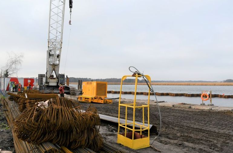 Przystań dla rybaków. Kończą wbijanie ścianek szczelnych. Zobacz zdjęcia.