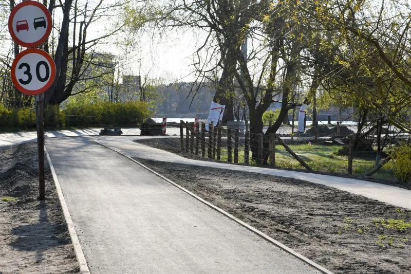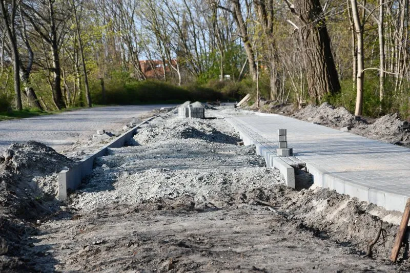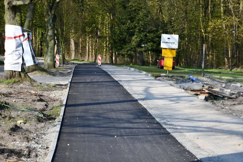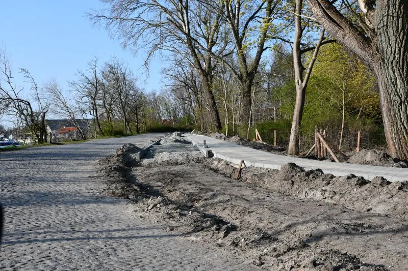 Wykonawca firma "Eurovia" zobowiązał się, że do końca czerwca będzie gotowa droga dla rowerzystów i chodnik dla pieszych wzdłuż ulic Jachtowej i Rogozińskiego. Zobacz aktualne zdjęcia.