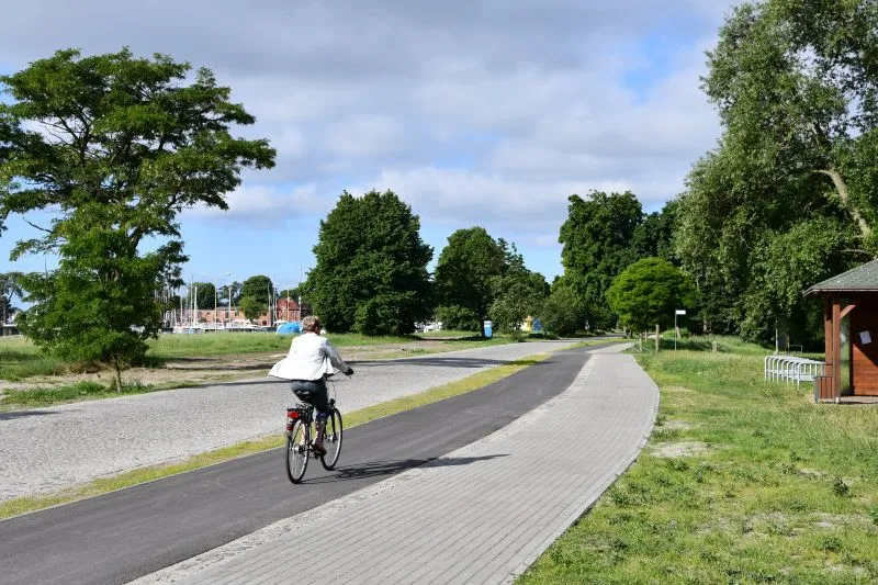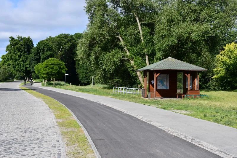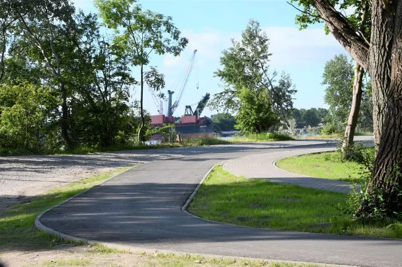 Nowa droga dla rowerzystów łączy się istniejącą już drogę rowerowo – pieszą „Nad Świną” z Wybrzeżem Władysława IV i przeprawą promową „Warszów”.