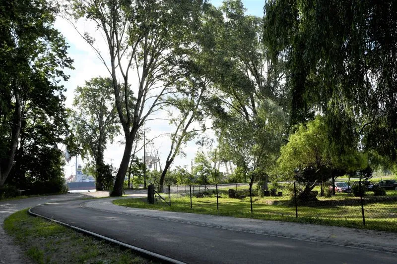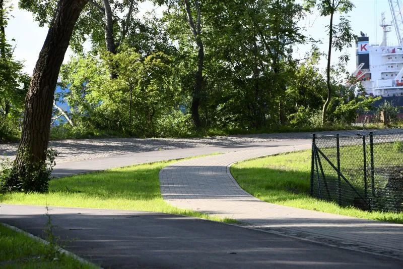 Druga część to droga rowerowa oraz chodnik. Biegną od bramy parkowej wzdłuż ulic Jachtowej i Rogozińskiego, aż do Wybrzeża Władysława IV.