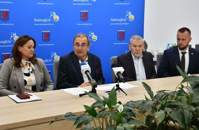Od lewej: Jolanta Kraszewska-Jurkowska, prezes zarządu TBS Lokum sp. z o.o. w Świnoujściu, Prezydent Miasta Świnoujście Janusz Żmurkiewicz, wiceprezes P.B. CALBUD sp. z o.o. Jan Gackowski oraz prokurent Marek Kondzioła.