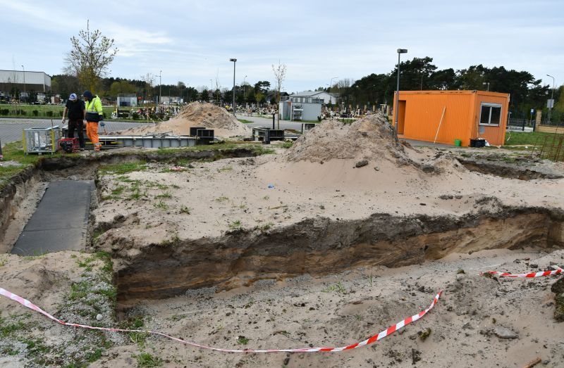 Na nowej części cmentarza ruszyła budowa kolumbarium. Stanie tuż przy bramie wejściowej. To będzie trzecie i największe na całym naszym cmentarzu. Będzie miało w sumie 380 nisz na 2 i 4 urny. Zgodnie z umową wykonawca szczeciński Świat z Granitu Sp. z o.o. ma zakończyć prace budowlane na przełomie lipca i czerwca. Pozostanie jeszcze odbiór inwestycji i wydanie pozwolenia na budowę.