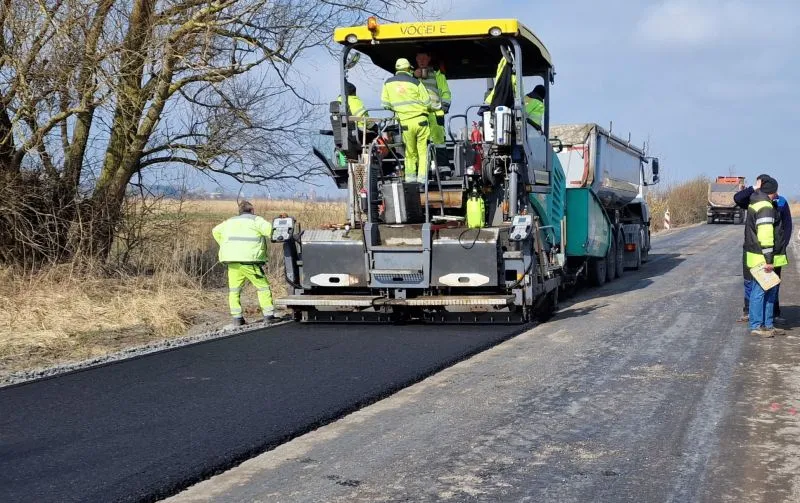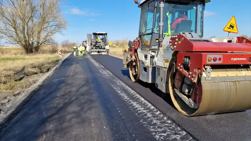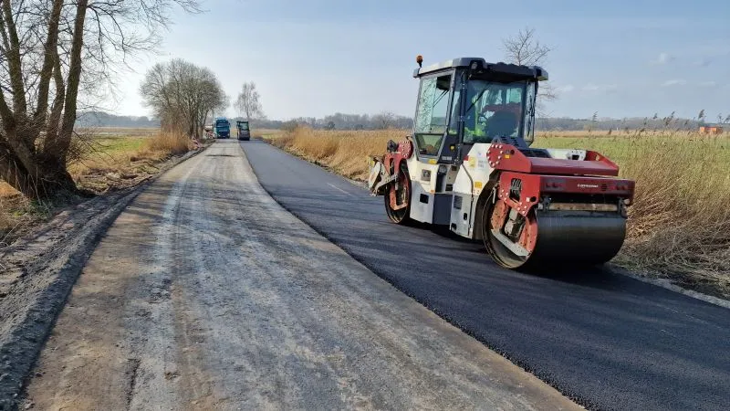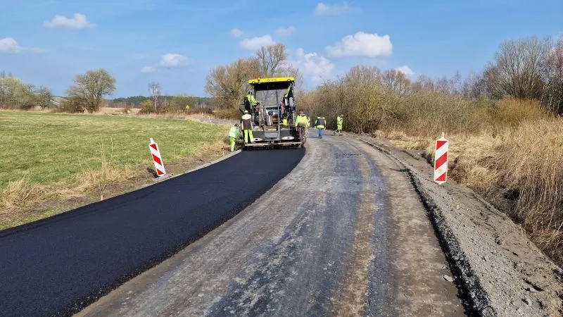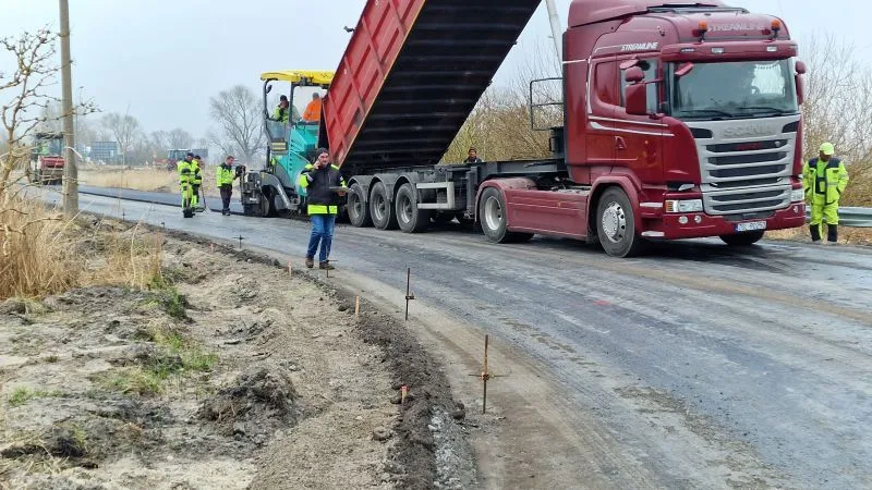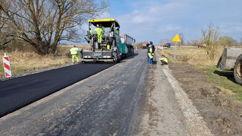 Na ulicy Mostowej wykonawca układa pierwszą warstwę asfaltu. Od 22 marca do 30 kwietnia 2024r. na ulicy Mostowej – odcinek od ulicy Wyspowej do ulicy Pomorskiej – będzie obowiązywał ruch wahadłowy sterowany sygnalizacją świetlną. Zobacz zdjęcia.