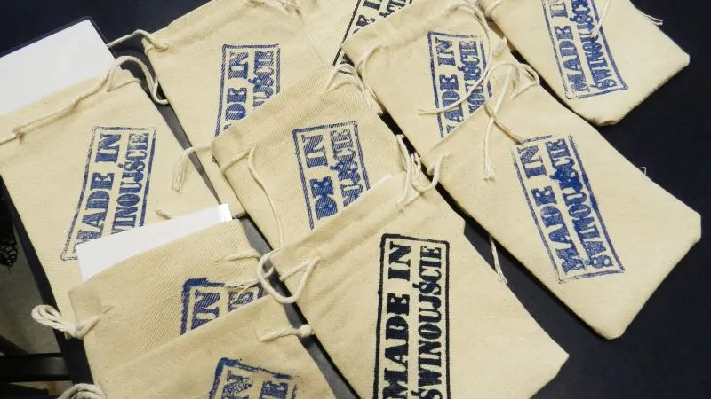 Uczestnicy warsztatów sami szyją te woreczki, wciągają sznurki do ściągania, stemplują pieczątką z napisem „Made in Świnoujście”.