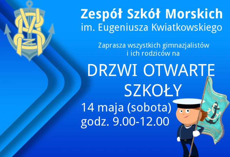 Dyrekcja, grono pedagogiczne oraz uczniowie Zespołu Szkół Morskich w Świnoujściu zapraszają gimnazjalistów w sobotę 14 maja od godziny 9.00 do 12.00 na. "DRZWI OTWARTE SZKOŁY". - W tym dniu gimnazjaliści będą mogli zapoznać się z ofertą edukacyjną szkoły. Nasze hasło brzmi:"Dobry zawód- dobra praca" – informuje dyrektor placówki Marzena Baranowska.
