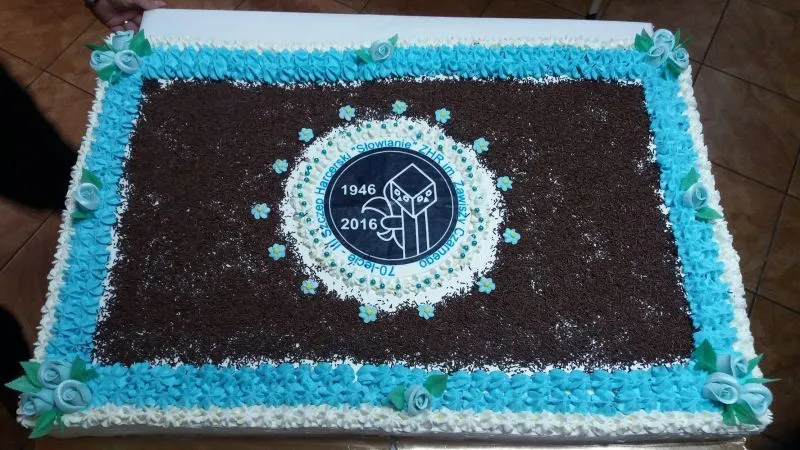 Po podziękowaniu za przybycie, na scenę wjechał olbrzymi tort 70-lecia.