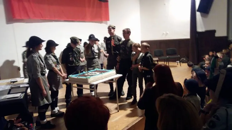 Po gali harcerze udali się do sali MDK. Przeszli tam ulicami miasta w uroczystym zwartym przemarszu, by tam uczestniczyć w koncercie rockowo harcerskim zespołu WBH – Wszyscy Byliśmy Harcerzami. Zaraz po nim wrócili do szkoły na tradycyjny harcerski kominek, z którego najlepszą pamiątką będzie fotografia drużyny z wnuczkami twórców harcerstwa. O naszych gościach, podziękowaniach, koncercie oraz kominku harcerskim opowiemy w innym artykule.