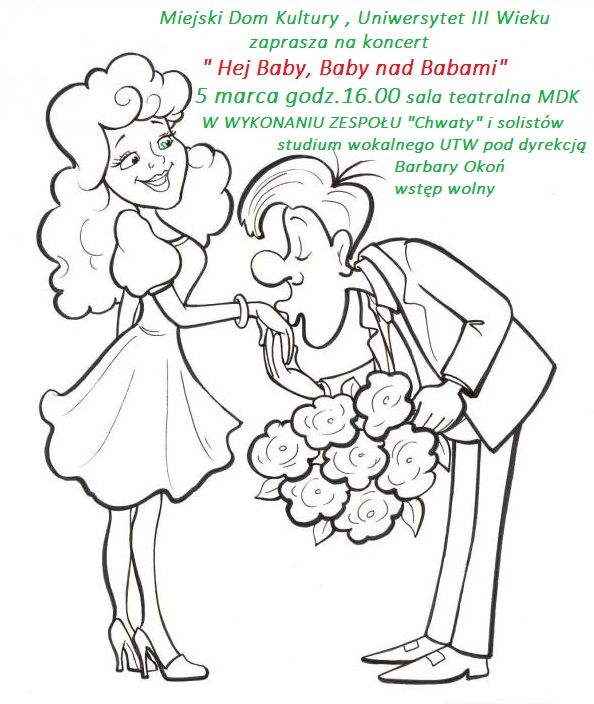 Miejski Dom Kultury Uniwersytet Trzeciego Wieku zaprasza na koncert „ Hej Baby, Baby nad Babami” w wykonaniu zespołu męskiego „Chwaty” i solistów studium wokalnego UTW pod dyrekcją Barbary Okoń. 5 marca 2017 r. (niedziela), godz. 16.00, sala teatralna MDK. Wstęp wolny.