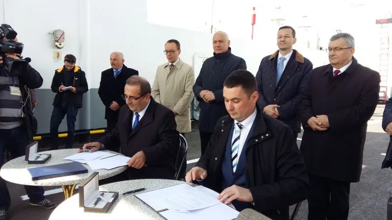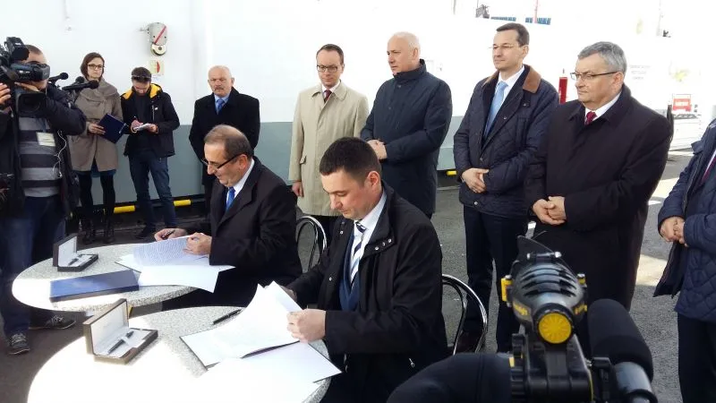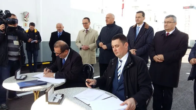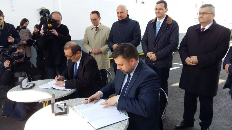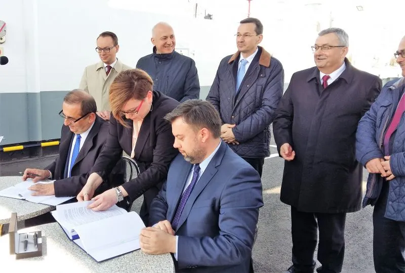 Dziś w południe na promie „Karsibór II” Prezydent Miasta Świnoujście Janusz Żmurkiewicz podpisał z dyrektorem Centralnego Urzędu Projektów Transportowych Przemysławem Gorgolem umowę o dofinansowanie w 85 procentach budowy stałego połączenia pomiędzy wyspami Uznam i Wolin oraz drugą z zastępcą dyrektora Generalnej Dyrekcji Dróg Krajowych i Autostrad Łukaszem Lendnerem na inwestorstwo zastępcze przy realizacji inwestycji.