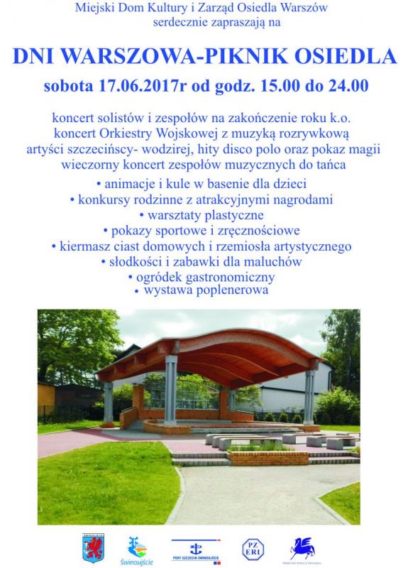 Miejski Dom Kultury Filia na Warszowie serdecznie zaprasza w imieniu swoim i współorganizatorów wszystkich mieszkańców i turystów na Piknik Osiedla Warszów w sobotę 17 czerwca 2017 r.. Początek o godz.15.00 na placu rekreacyjnym przy MDK Warszów ul.Sosnowa 18