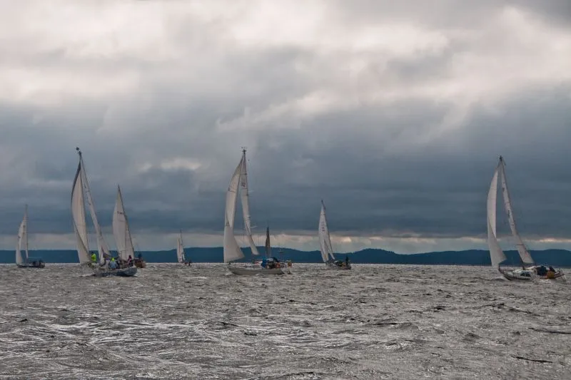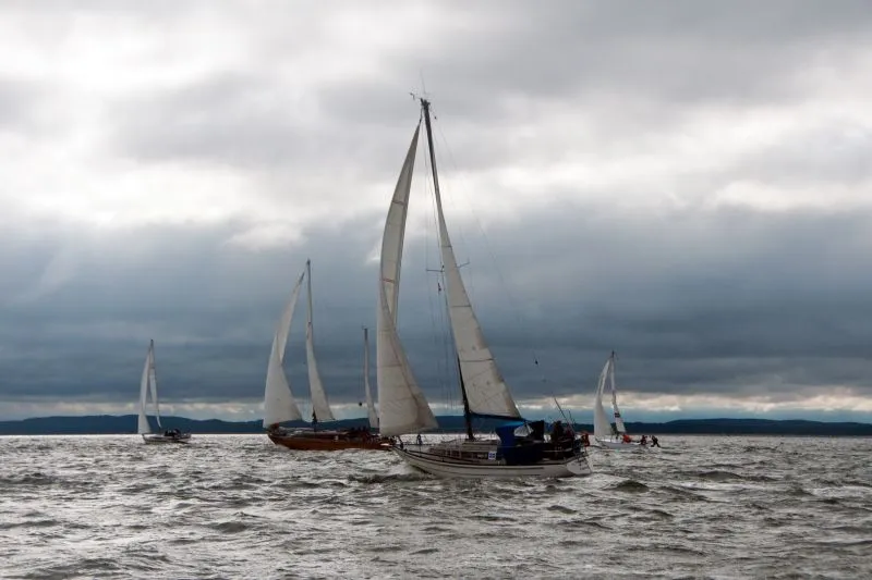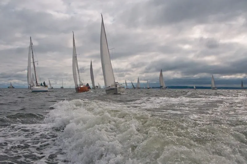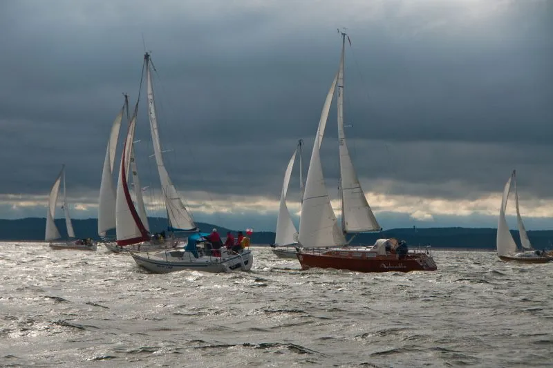 Jachty zostały podzielone na grupy: z pomiarem ORC, z pomiarem KWR, trzy grupy bez pomiarów Open oraz oldtimery i żeglarze samotni. Taki podział to również tradycja tych regat. Tak jak w tytule, często padał deszcz i mocno wiało z zachodu. Przeważały wiatry od 4 do 6 stopni w skali Beauforta. Jak mówi stare powiedzenie żeglarskie – z silnym wiatrem żeglarz da radę a z flautą nie popłynie. Warunki były bardzo dynamiczne. Wiele żagli i innych elementów osprzętu uległo uszkodzeniom, kilka jachtów musiało zawrócić podczas drugiego wyścigu do Kołobrzegu.