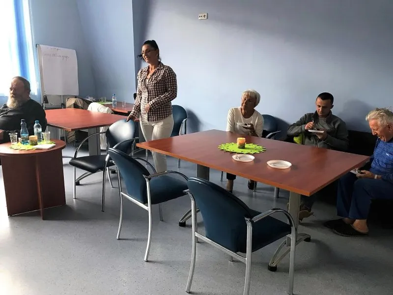 Marek Mamica to mężczyzna o wysokiej kulturze osobistej, ratownik górski, niezwykle wrażliwy na otaczającą go naturę i ją właśnie najchętniej uwiecznia na płótnie. Maluje szpachlami w technice olejnej „alla prima”. Zaprezentował też wiele ze swoich malarskich dzieł w szpitalnej świetlicy. Rozmowa była na tyle interesująca, i smaczna! – bo słodki poczęstunek jak zwykle przygotowały zaprzyjaźnione z nami „Fajne Babki”, że spotkanie trwało blisko dwie godziny! Marka Mamicę przy sztaludze spotkać można na co dzień w Forcie Anioła. Dziękujemy za to przedsięwzięcie w imieniu pacjentów i własnym.