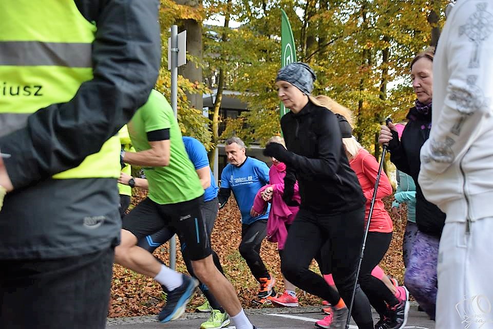 84 zawodników w sobotę (04.11.2017) - potwierdziło tezę – „jak dobrze wstać, skoro świt”. Na przekór jesiennym smutkom, chorobom i innym nieprzewidzianym sytuacjom, bo przecież jest sobota jest parkrun. Już 69 razy witano biegowo sobotnie poranki w parku. Było gwarno, wesoło i szczekliwie, jak zawsze czworonożni przyjaciele nie omieszkali głośno przypomnieć o swojej obecności. W biegowej stawce przeważały kobiety (być może są bardziej zdyscyplinowane, zdeterminowane, zabiegane… ).