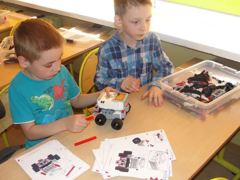 w parach. Do dyspozycji mają przenośny komputer oraz zestaw klocków. Swoją pracę rozpoczynają od ułożenia figury z klocków, która właściwe już po zakończonej pracy staje się  interaktywnym robotem, ponieważ sensory i silniki sprawiają, że po podłączeniu do komputera  nowo powstały robot wykonuje polecenia konstruktora.
