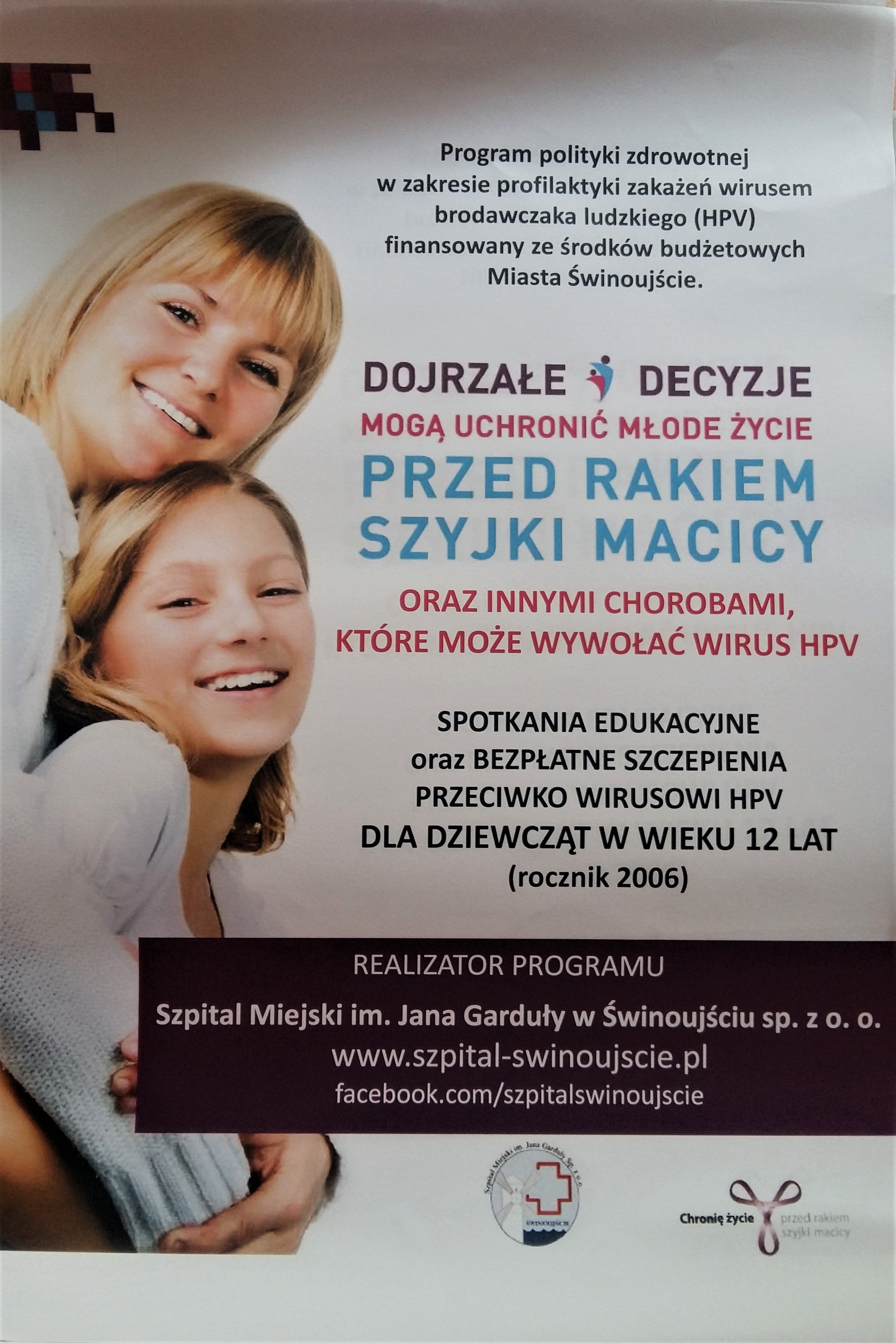 Szpital Miejski im. Jana Garduły w Świnoujściu sp. z o.o. rozpoczął realizację „Programu profilaktyki zakażeń wirusem brodawczaka ludzkiego w Gminie Miasto Świnoujście”. Wirus HPV jest odpowiedzialny za powstawanie raka szyjki macicy. Biorąc pod uwagę rekomendacje światowych i polskich towarzystw medycznych, stworzono program i podjęto decyzję o zaszczepieniu młodych mieszkanek Świnoujścia z rocznika 2006, zameldowanych na terenie miasta.