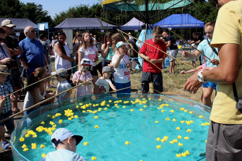 W przerwach pomiędzy występami odbyły się ze sceny trzy licytacje wspaniałych tortów, które nabyto za 200, 300 i 500 zł. Wielkim zainteresowaniem cieszyły się przygotowane stoiska pod namiotami. Można było skosztować pysznych domowych wypieków, poczęstować się nietypowymi goframi i watą cukrową, dostać piękne baloniki, zbadać parametry zdrowia, kupić coś ciekawego na "pchlim targu", zrobić sobie zdjęcie w monidle czy pomalować buzię dziecku. Furorę robiła karuzela i basen, z którego dzieciaki wyławiały specjalną wędką pływające w nim kaczuszki. Marynarze z 8 FOW dopełnili całości serwując pyszną grochówkę z nowoczesnej kuchni polowej i prezentując sprzęt.