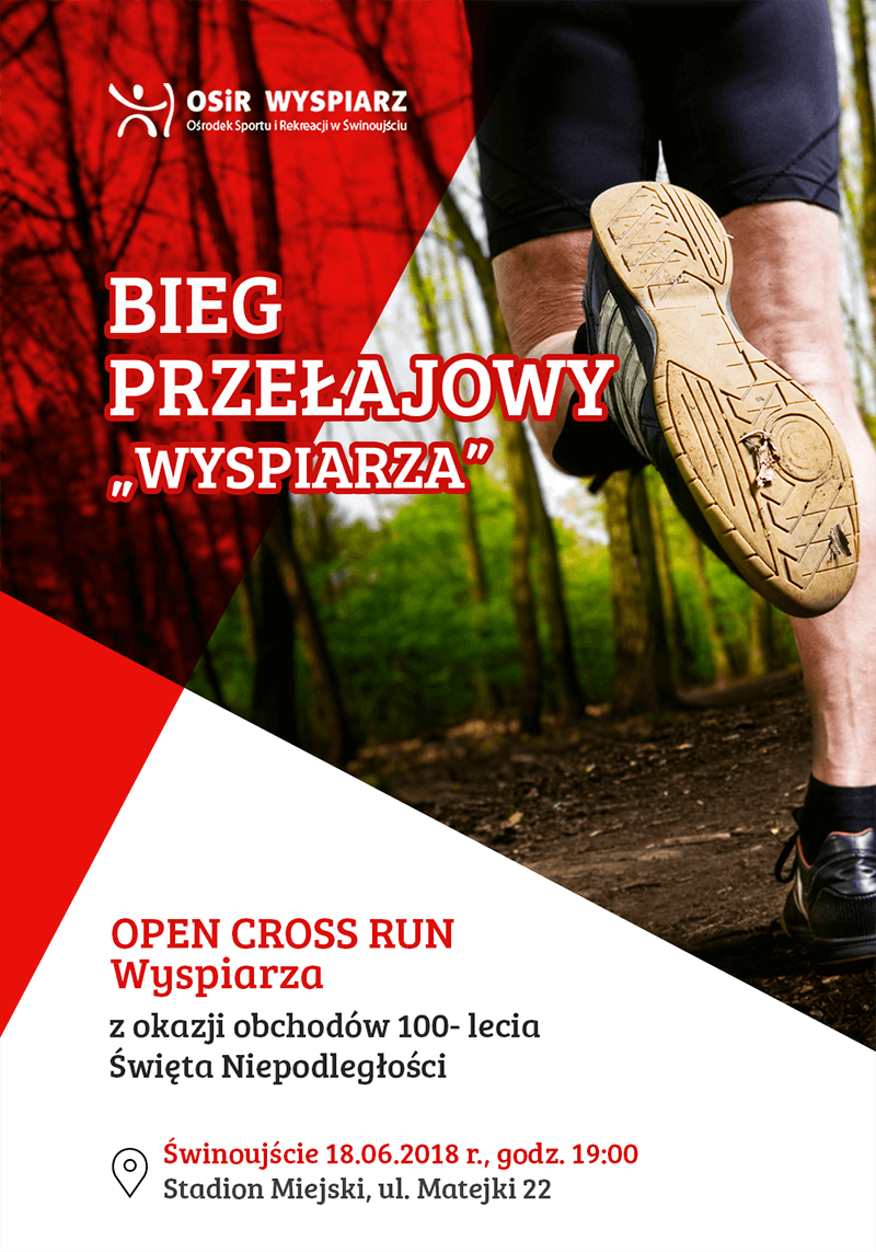 Ośrodek Sportu i Rekreacji „Wyspiarz" serdecznie zaprasza wszystkich biegaczy na kolejną imprezę biegową pod nazwą: OPEN CROSS RUN Wyspiarza. Tymi biegami chcemy uczcić 100 - lecie Niepodległości Państwa Polskiego. Biegi przełajowe odbędą się w dniu 18 czerwca o godz. 19:00 na Stadionie Miejskim. Biuro zawodów przy ul. Matejki 22, od godz. 17:00 będzie przyjmować zapisy uczestników.
