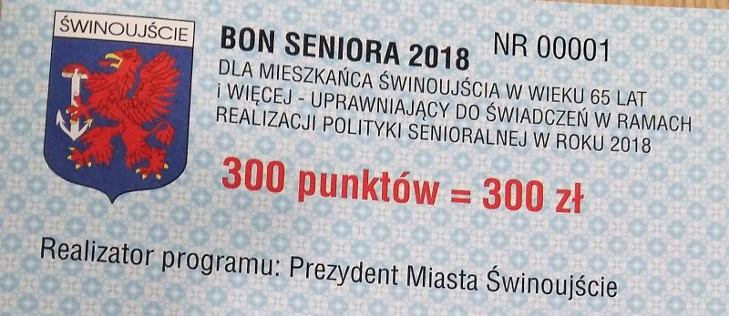 Na wniosek zainteresowanych od poniedziałku 6 sierpnia 2018 r. Bony Seniora wydawane będą w godzinach 8.30 – 15.00. Bony przysługują świnoujścianom, którzy ukończyli lub skończą w tym roku 65 lat. Na ich podstawie seniorzy mogą za darmo skorzystać z 440 różnych świadczeń: badań lekarskich, ambulatoryjnych, rehabilitacyjnych oraz wydarzeń kulturalnych.