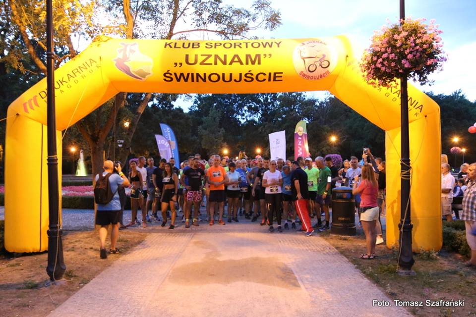 Dokładnie o 21:00 (14 sierpnia 2108), tuż przy parkowych fontannach, wystartowała Nocna 9, bieg zorganizowany przez świnoujskich biegaczy, przy dużym wsparciu lokalnych sponsorów, dla mieszkających i wypoczywających w naszym mieście biegaczy. Limit biegu to 100 miejsc, a więc bieg kameralny. Czas startu to pora zmierzchu, a więc bieg nastrojowy.